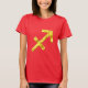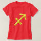 T-shirt de Sagittaire en rouge lumineux de puissance avec le symbole de Sagittaire d'or. D'autres styles et couleurs sont disponibles. Faites votre déclaration avec le tonus.