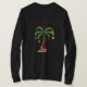Chemise à manches longues pour dames en noir avec un imprimé de palmier de fête avec le texte de Feliz Navidad. Parfait pour les vacances. Customisez cet objet ou achetez tel quel.