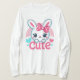 Ce charmant T-shirt blanc présente un charmant lapin de style dessin animé avec de grands yeux expressifs et un joli arc rose sur la tête. Le lapin est entouré de coeurs ludiques, et le mot "mignon" est imprimé ci-dessous dans une police amusante et stylisée. Parfait pour ajouter une touche de fantaisie et de douceur à toute tenue, ce t-shirt est idéal pour les amateurs de lapin et ceux qui apprécient les designs adorables.