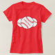 Ce t-shirt présente des couettes rouges et blanches entourées d'un arrière - plan rouge. Le texte dit : "Maman au softball". Customisez facilement le texte pour un fan de sport spécial ou retirez entièrement. Idéal pour la Fête des Mères ou n'importe quelle période de l'année !