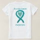 La sensibilisation au cancer de l'ovaire utilise un ruban turquoise pour la sensibilisation à sa cause. L'art de la chemise présente un ruban de conscience turquoise peignant le coeur. Le message de la conscience coeur t-shirt note "Sensibilisation au cancer de l'ovaire". Il y a une grande image sur le dos de la chemise et une plus petite image sur le devant de la chemise. Les vêtements d'art ruban de coeur de conscience turquoise peuvent être customisés de messages personnalisés pour faire des vêtements de cause pour les chemises de collecte de fonds, les chemises de promenade de l'équipe de groupe, des cadeaux de sensibilisation aux t-shirts, ou d'autres événements de cause spéciale des occasions de marchandises pour aider à sensibiliser la population à l'aide de la société à créer de l'aide et à provoquer des changements.