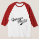 Logo éclaté de GD sur une chemise de base-ball de douille de 3/4 dans combinaison de couleurs rouge de garage d'official*/blanche/noire poussiéreuse. Puisque les importations sont peu trop des passionnantes et le base-ball calme les nerfs. *official pour autant que les voitures de GD tendent toujours à finir avec ces couleurs sur elles