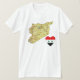 Un drapeau syrien en forme de coeur est placé à côté d'une carte des reliefs de Syrie sur ce t-shirt typiquement patriotique.