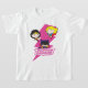 Découvrez Chibi Supergirl, Chibi Wonder Woman et Chibi Batgirl rassemblées autour d'un logo rose de la Ligue de la Justice devant un éclair rose.