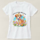 T-shirt femme avec photo d'un mignon chiot assis au milieu des fleurs. Il semble très heureux d'être entouré de fleurs et de papillons.Le cadeau parfait pour donner à ceux qui aiment les chiens chiots. Le slogan est "Petites pattes, Grand amour". Contient du contenu génératif.