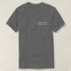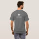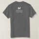 Un t-shirt pour un randonneur professionnel, un gardien de chiens, un dresseur de chiens ou un gardien de chiens. Le nom de votre entreprise est imprimé sur la poitrine gauche du t-shirt et le dos du vêtement comporte le nom de votre entreprise ainsi qu'un graphique canin. Le texte et le graphique sont en blanc sur un arrière - plan gris. Regardez intelligemment et professionnel tout en augmentant la visibilité de votre marque de services pour animaux de compagnie.