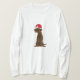 Chien adorable de labrador retriever de chocolat portant une conception de chemise ou de sweatshirt de bande dessinée de casquette de Père Noël. Grande idée de cadeau. Peut également ajouter le texte fait sur commande en passant commande.