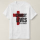Le T-shirt des hommes chrétiens de Pâques présente une citation inspirée de l'écriture, "CHRIST LIVES He is Risen", qui est une partie de la Bible Verse Matthew 28:6. Il représente un texte noir gras avec une grande croix rouge.