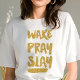 Parce Que Je Prie Avant D'Éclater. Un réveil chrétien branché priez de tuer le dessin de tshirt en faux or. Parfait pour les chrétiens religieux pieux qui aiment Jésus et se réconfortent dans sa parole pour tuer la journée.