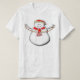 Chemise unique de fête de Noël avec un bonhomme de neige tenant une ficelle de pop-corn mendiant pour un câlin.