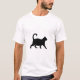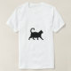 A minimalist black cat silhouette featuring a cute chubby cat walking with its tail curled high, perfect for cat lovers who like clean and modern designs. This simple black‑on‑white vector style graphic looks great on casual t‑shirts, hoodies and more, and makes a fun gift for cat moms, cat dads and anyone obsessed with their feline friend.
