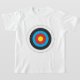 Une cible de tir à l'arc avec les anneaux blancs, noirs, bleus, rouges et jaunes.