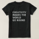 Tshirt pour les créatifs présente le texte "la créativité fait tourner le monde" sur le dos du tshirt en typographie blanche sur un arrière - plan noir. Conçu exclusivement pour vous par Happy Dolphin Studio. Si vous avez besoin d'aide ou de produits correspondants, veuillez nous contacter par l'intermédiaire de notre conversation de magasin!