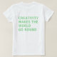 Tshirt pour les créatifs présente le texte "la créativité fait tourner le monde" en gras typographie verte d'été. Conçu exclusivement pour vous par Happy Dolphin Studio. Si vous avez besoin d'aide ou de produits correspondants, veuillez nous contacter par l'intermédiaire de notre conversation de magasin!