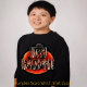 Ce dessin graphique, a été édité avec photo, pour mettre en valeur, ce Menacing, le grincement d'image citrouille, en orange, jaune, noir et gris-avec Happy Halloween, Emblazoned, à l'avant, en macabre, en lettrage blanc.