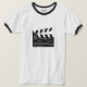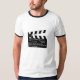 Chemise entièrement personnalisable de clapet de production cinématographique de Hollywood Slateboard. Les cinéastes, réalisateurs, les professionnels visuels de production apprécieront ce graphique de clapet de film. Personnalisez-le avec l'information de production, le nom de directeur, directeur de la photographie, cinéaste, opérateur d'appareil-photo, scène, prise, date, ou toute autre chose que vous voulez. Perfectionnez le cadeau personnalisé pour votre équipage à la partie d'enveloppe. Ce slateboard est complet avec le clapstick. Le clapet de film de Hollywood à lui est le meilleur. Si vous tirez un film avec le matériel vidéo professionnel, un iPad, l'iPhone ou un appareil-photo de vidéo domestique, marquez l'occasion avec cette chemise. ….et ACTION !