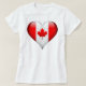 Coeur de verre avec des rayures rouges et blanches et une feuille d'érable.