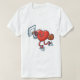 Un design ludique de t-shirt montrant un adorable personnage de coeur souriant jouant au basket-ball, tenant une balle, et pointant vers un panier de basket."