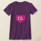 Ce t-shirt est doté d'un coeur rose vif et chaud contenant des lettres coques supérieures blanches et audacieuses, IL, l'abréviation officielle de l'Illinois, l'état des Prairies.