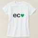 T Shirt Éco Cœur Vert. T-shirts Verts pour Femmes. T-shirts verts pour femmes. T-shirts modernes verts et blancs. Vêtements de sport actifs pour femmes. Idéal pour les amoureux de la nature.