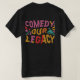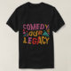 Ce t-shirt porte le slogan "Comedy Our Legacy" dans une police ludique et multicolore. Les lettres flottent de couleurs vives, ressemblant à des bonbons ou à de la peinture fondus, ajoutant une touche de fantaisie et de plaisir.