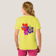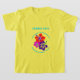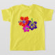T-shirt pour enfants ou adultes avec une oeuvre d'art sur les fleurs d'hibiscus pour une réunion de famille. Un design d'hibiscus vif et audacieux, en rouge, rose et violet, est imprimé sur l'avant et l'arrière de ce t-shirt jaune vif à manches courtes. Le texte bleu aqua peut être personnalisé à trois endroits sur l'avant. Incluez le nom de la famille, la date et le lieu de l'événement. Le design sera transféré sur d'autres styles, tailles et couleurs, pour tous les membres de la famille.