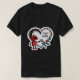 "Compilé avec amour" est un design ludique avec un coeur de code et un mignon robot tenant une fleur, parfait pour les programmeurs qui apprécient le mélange de technologie et d'humour.