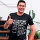 Tee-shirt qui semble de très bonne qualité, peu être cela aurait été plus cohérent si il était produit plus localement. Très bonne qualité d'impression, j'aurais souhaité qu'elle prenne un peu plus d'espace sur le T shirt, mais je n'ai pas réussi à le faire sur mon image