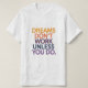 Design de typographie inspirant avec la citation "Les rêves ne fonctionnent pas à moins que vous ne le fassiez". Un rappel parfait pour les animateurs, les étudiants, les entrepreneurs et les amateurs de gym qui croient au travail acharné et au dévouement. Idéal pour t-shirts, affiches, tasses, autocollants et autres produits personnalisés. Fait un don puissant pour quiconque poursuit ses objectifs et s'efforce de réussir.