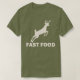 Fast Food Design avec l'image d'un T-shirt cerf. © Tee - shirt & Sweats at Zazzle. Ce T-Shirt a une conception d'un cerf qui saute dessus avec les mots Fast Food en dessous. Il y a de l'humour dans le double sens de cette chemise.