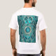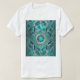 Un design abstrait captivant avec des lignes d'or complexes contre un riche arrière - plan turquoise. Le centre est un motif circulaire avec des éléments rayonnants, donnant à l'oeuvre un sens de la profondeur et du mouvement. Les motifs environnants comprennent des formes courbes et entrelacées, créant une composition élégante et harmonieuse qui évoque un sentiment de luxe et de sophistication."