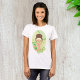 Un dessin d'une femme ayant un visage de concombre. Ce design semble vraiment efficace sur ce T-shirt féminin
