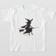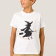 Une silhouette de sorcière sur un balai avec les mots en orange "Oh oui, je peux conduire un bâton."