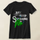 Un poisson mignon de bande dessinée avec un requin à l'arrière-plan avec les mots "continue juste à nager" sur un T-shirt.