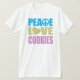 Peace Love Cookies...De quoi avez-vous besoin dans la vie ? Un cadeau parfait pour tous les accros de biscuits. Peu importe que vous soyez un boulanger professionnel qualifié qui fait cueillir des biscuits dans votre propre boulangerie, que vous soyez strictement un boulanger de Noël qui fabrique ces biscuits glacés décorés festifs, que vous soyez un accro de la boulangerie qui propose toujours des recettes de biscuits nouvelles et uniques, ou que vous aimiez manger des biscuits, qu'il s'agisse de chips de chocolat, de sucre, de farine d'avoine, ou de beurre d'arre......vous êtes accro aux biscuits ! Une idée cadeau amusante pour tout amateur de biscuits. Idéal pour toute diva de cookie. Le design est doté d'un coeur et d'un signe de paix. Voir notre boutique pour plus de plaisir et unique Peace Love...chemises et cadeaux.