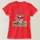 Piglet in sunglasses sitting in the mud with a cocktail and the slogan "Cool Bacon" on a red t-shirt