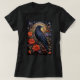 T-shirt avec un corbeau noir. Une arche jaune derrière. Entouré de fleurs rouges et violettes. L'ambiance gothique cool.