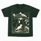 Whether you’re a fan of space, cryptids, or quirky animals, this tee captures that “weird in the woods” energy. A great choice for nature lovers, UFO believers, and anyone who loves offbeat surreal designs.