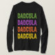 Ce design met en valeur le mot "Dadcula" dans une formation empilée saisissante, rendu dans une police festive qui dégouline de sang et qui dégage un charme effrayant. Le texte ressort dans quatre couleurs vibrantes d'Halloween - vert, violet, orange et jaune -, créant une déclaration audacieuse et accrocheuse parfaite pour la saison des fêtes. Pour les papas qui hésitent à porter des costumes élaborés, ce design "Dadcula" est une solution idéale pour Halloween. C'est une alternative sans tracas et confortable aux costumes fantaisistes, qui plaira à ceux qui préfèrent la simplicité tout en participant au plaisir effrayant.