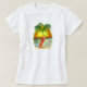 Bonnes fêtes des plages sablonneuses chaudes de votre plage tropicale préférée d'île. Palmier décoré des ornements et des lumières de Noël, avec une rétro planche de surf se penchant contre l'arbre de Noël dans l'avant un coucher du soleil au-dessus de l'océan.