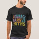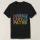 Le design du t-shirt comporte l'expression "Courage Carves Paths" en caractères gras et multicolores. Les couleurs vives et la police dynamique créent une déclaration visuellement frappante et inspirante. La conception transmet un message de persévérance, de détermination et de puissance du courage pour surmonter les défis et créer de nouvelles opportunités.