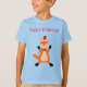 Ce t-shirt pour enfants présente une image art numérique d'un renard de Noël mignon. Le renard est orange avec un blanc avec une queue boisée, des fouets noirs et un nez noir. Il a aussi de beaux yeux jaunes. et porte un chapeau de Père Noël rouge et blanc sur sa tête. il ya un texte personnalisé pour vous permettre d'inclure un message.