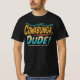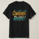 Un design de t-shirt amusant et attrayant avec l'expression Cowabunga, Dude! dans un schéma multicolore vibrant.
