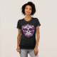 Crâne à sucre Dia de los Muertos dans les tons colorés de violet entouré de fleurs.