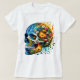 Ce design saisissant est doté d'un crâne vibrant, mêlant harmonieusement les éléments bruts de l'électricité et du feu à la délicate beauté des fleurs. Le côté gauche du crâne est animé par des courants électriques bleus intenses, symbolisant l'énergie et la puissance. Sur le côté droit, les flammes vives dans les tons orange et jaune se mêlent à un ensemble de fleurs aux couleurs vives, comme les marguerites, les tournesols et divers fleurs sauvages en rose, blanc et jaune. La flore et les flammes poussent hors du crâne, créant un contraste fascinant entre l'énergie chaotique et la beauté sereine de la nature. Le design encapsule une juxtaposition harmonieuse mais puissante, ce qui en fait une pièce exceptionnelle pour ceux qui apprécient les expressions audacieuses et artistiques.