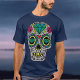 Crâne à sucre Art. Style mexicain Day of the Dead sur le thème de l'art créatif. Image crânienne humaine créée par la combinaison de formes abstraites et de motifs de différentes couleurs sur une image de base principalement grise. L'image évoque des souvenirs de la puissance des fleurs, de la culture hippie ou de l'imagerie gothique rock star.