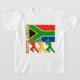 Trois ont silhouetté des joueurs de cricket devant le drapeau sud-africain avec le nom du pays Afrique du Sud du côté.