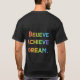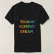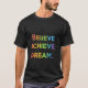 Ce design inspirant de t-shirts comporte l'expression "Croyez Réussir le Rêve" en caractères gras et multicolores contre un arrière - plan dynamique et abstrait. Le design transmet un message d'espoir, de détermination et de puissance des rêves pour façonner son avenir. Il encourage les porteurs à croire en eux-mêmes, à fixer des objectifs ambitieux et à travailler dur pour réaliser leurs aspirations.