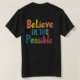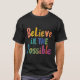 Ce design inspirant de t-shirts comporte l'expression "Croyez en le Possible" en caractères gras et multicolores contre un arrière - plan dynamique et abstrait. Le design transmet un message d'espoir, d'optimisme et de puissance de croyance pour créer un avenir meilleur. Il encourage les porteurs à adopter une pensée positive, à envisager leurs objectifs et à prendre des mesures pour faire de leurs rêves une réalité.
