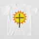 Croix dressée contre un soleil jaune vif. Ce design semble vraiment efficace sur ce T-shirt Girls